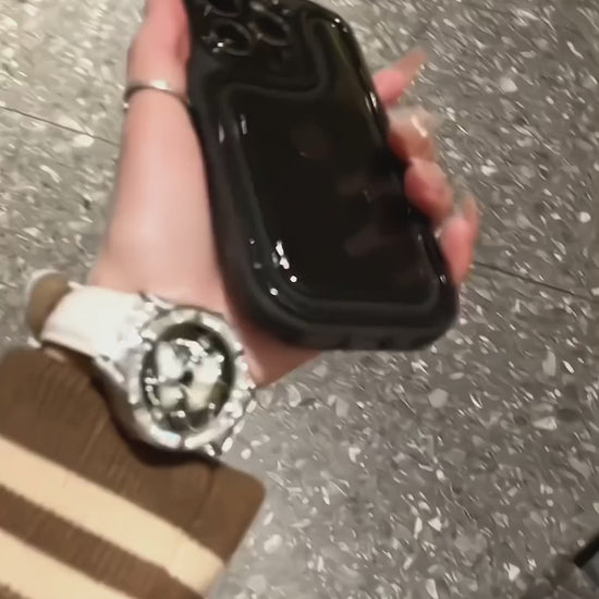 La Black Smoke Case combina elegancia y protección en un diseño minimalista y moderno. Su acabado transparente con tono humo le da un aspecto sofisticado, mientras el borde negro brillante enmarca perfectamente el iPhone, ofreciendo una apariencia premium y discreta.