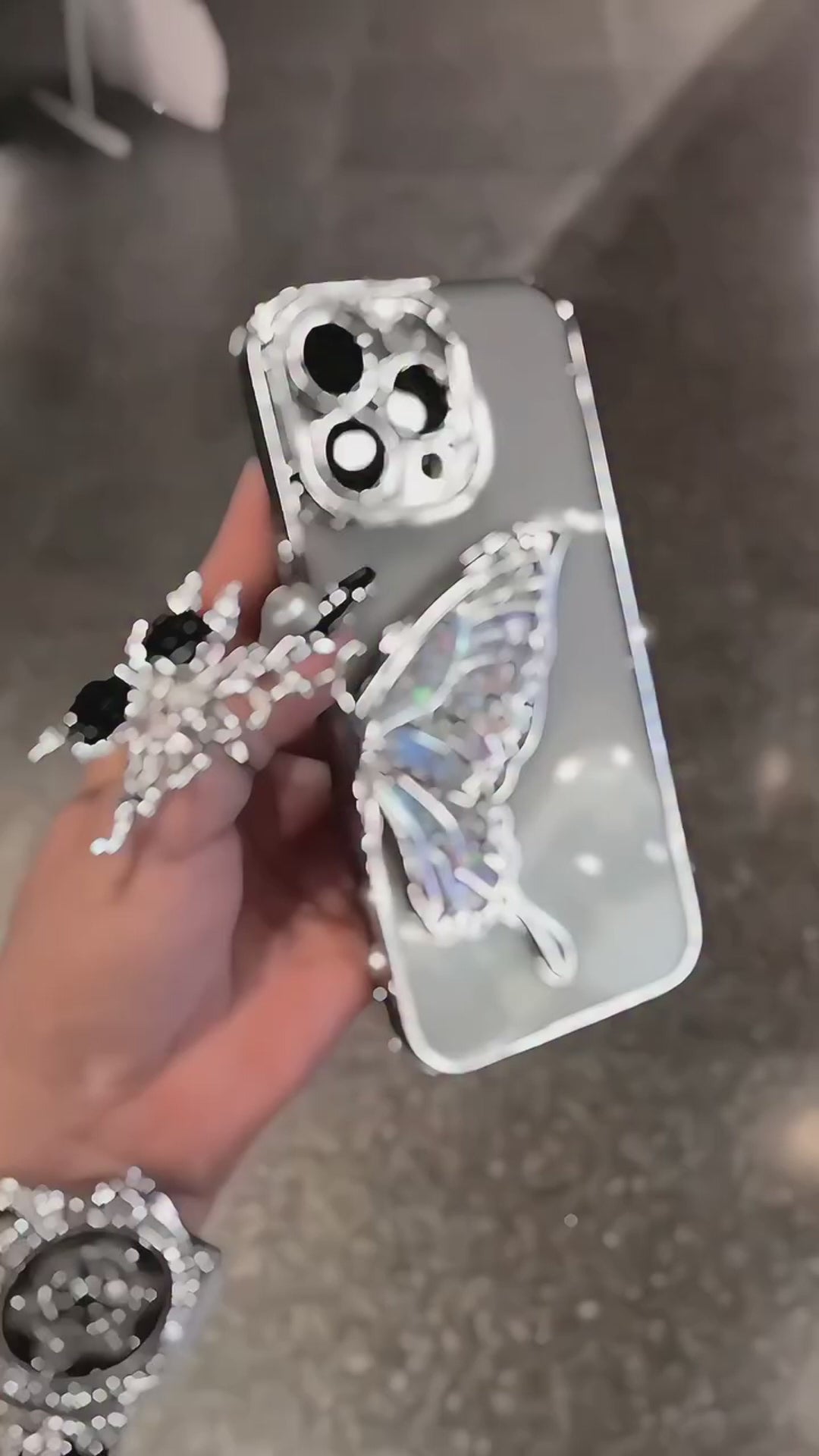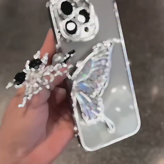 La Butterfly Royale Case destaca por su diseño elegante y sofisticado, con una mariposa metálica decorativa que aporta un toque de brillo y distinción. Su acabado transparente permite lucir el color original del iPhone, mientras el adorno brillante refleja la luz con un efecto deslumbrante.